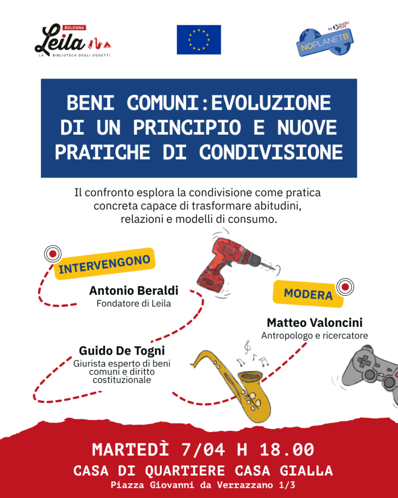 Un dialogo tra Antonio Beraldi, fondatore di Leila Bologna – La Biblioteca degli Oggetti e Guido De Togni, dottore di ricerca in Diritto costituzionale ed esperto di beni comuni.