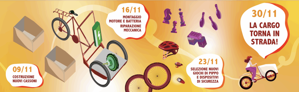 La Cargo di Leila è già partita per la riparazione e nelle prossime settimane verrà rimessa a nuovo e per fine novembre tornerà per le strade di Bologna, pronta a portare laboratori, giochi e momenti di condivisione nei quartieri della città!